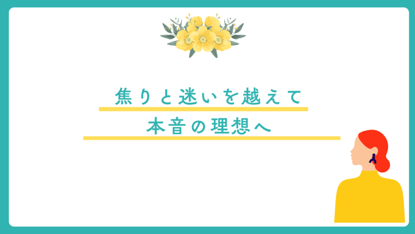 はじめに こんにちは。あなたの本音の理想を育て、豊かな人生へ導くNLPライフコーチ、テリーです。 今回は、私自身が半年間抱えていた焦りや迷い、そこから立ち止まってもう一度「本音の理想」を見つけ直した体…